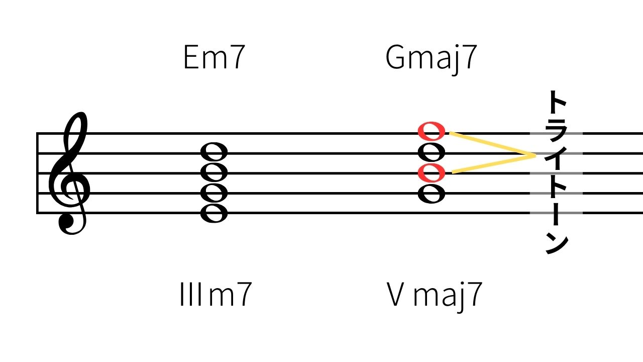 Ⅲm7はトニック(Ⅰmaj7)とドミナント(Ⅴ7)の代理になります。
