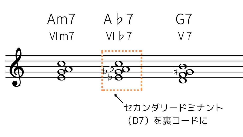 裏コードとは、代理ドミナント(置換ドミナント)とも呼ばれ、ドミナントと置き換えることができるコードのひとつです。